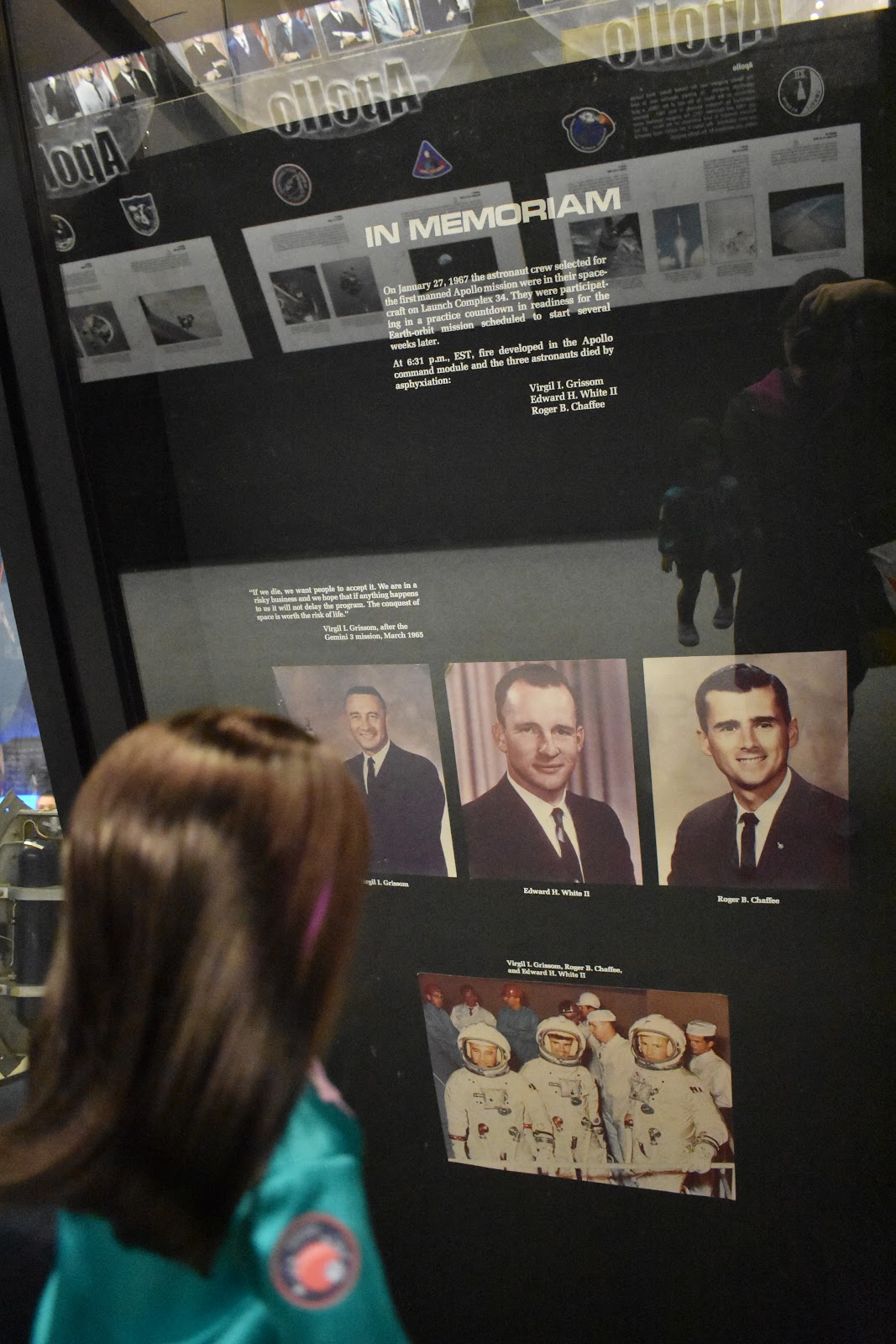 The gallery overlooking the ground floor gallery – Apollo to the Moon – discusses the history of the race to the moon specifically, explaining the history of the Mercury, Gemini and Apollo missions, with a small memorial to the astronauts killed in a pre-launch test of the Apollo 1 mission.